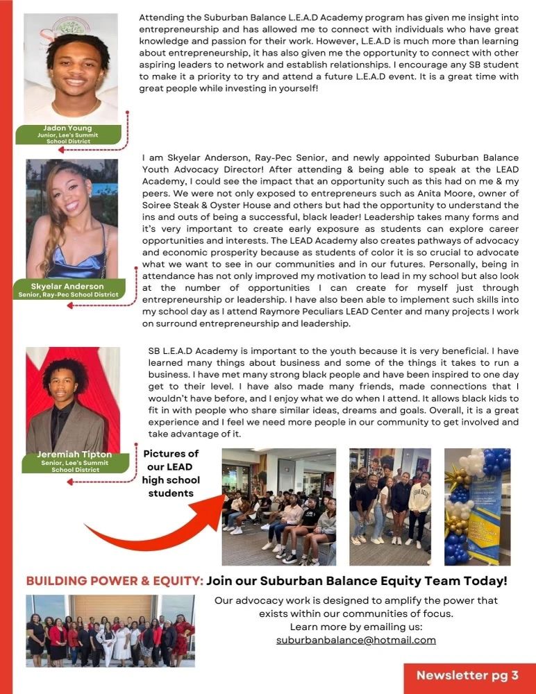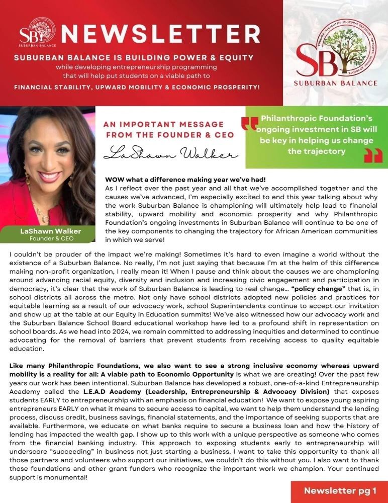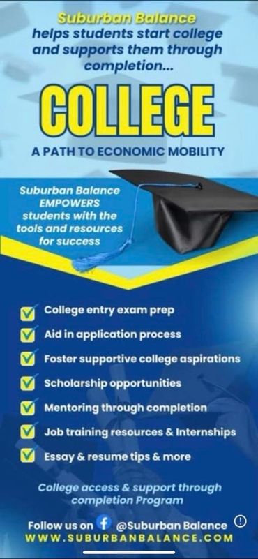 Suburban Balance is committed to addressing inequities that create educational & health disparities! Education is a key social determinant of health. We are dedicated to ensuring students of color are college and career ready. We aim to help them prepare for college or connect them to workforce development or certification programs. Suburban Balance is championing work that will ultimately put students on a path to economic mobility. Through our robust programming, Suburban Balance is growing the mindsets, knowledge, skillsets and behaviors essential for college and career success.